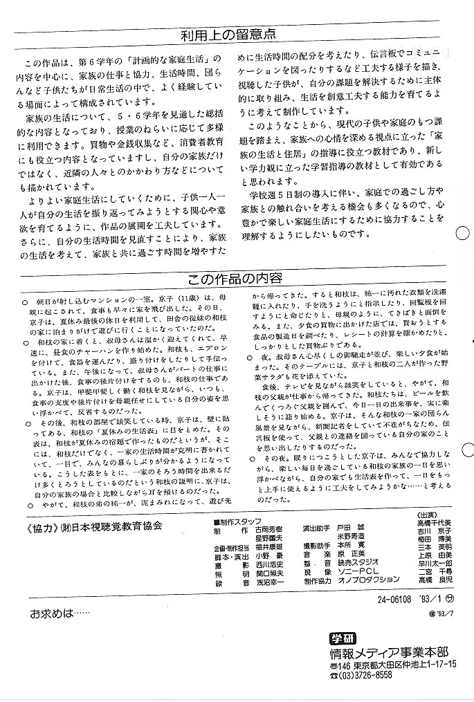 ある子供の夏休みの生活を通して、自分の家族の生活時間や、自分と同年齢のいとこの生活を対比して描き、計画的に創意工夫して生活することを共感をもって視聴し自らの課題として考えるように意図して制作されている。