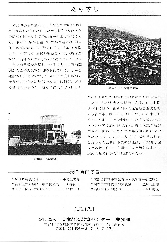 人々が公共的事業をもり立てていくためにどう対応すべきかを考えさせるもの。