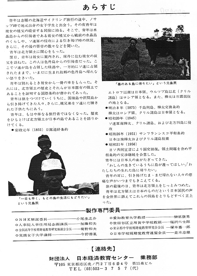 北方領土が歴史的に見ても国際条約上から見ても我が国の領土であることを正確な資料によって解説するとともに、国民一人一人が正しい認識を持つことにより、領土返還という国民的悲願達成の一助とするものである。