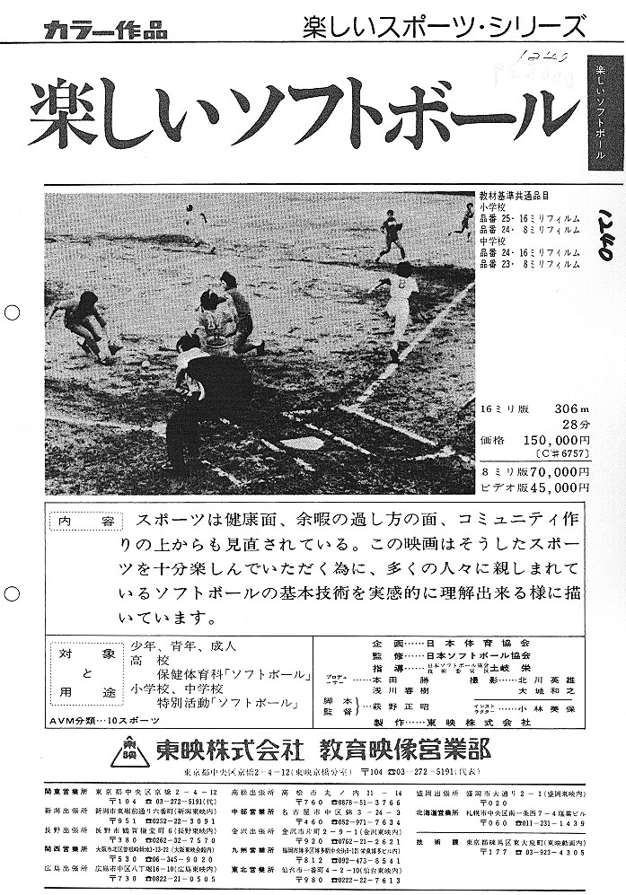 守備の基本、正しいピッチングやバッティング、ベースランニングにおける留意点など、ソフトボールの基礎的な技術とその練習法について説明している。