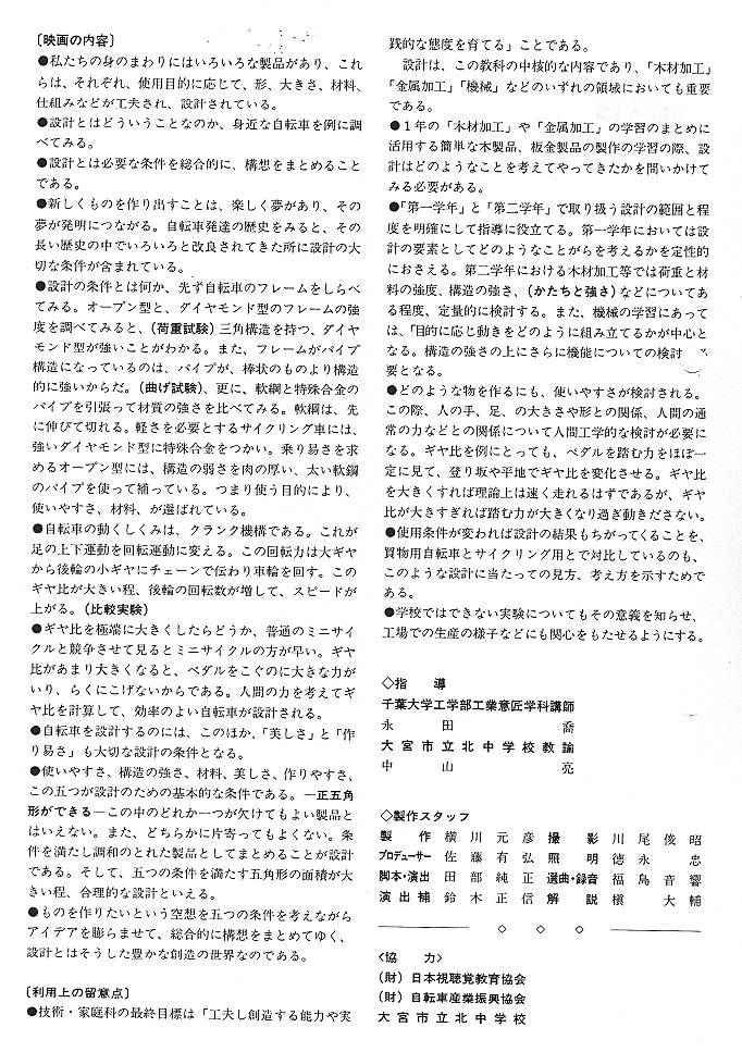 ものを作る、つまり設計にあたっての必要条件である。使いやすさ、強さ、材料、美しさ、作りやすさなどの5つの条件の重要性を、身近なものとして利用されている自転車の設計を通して説明している。